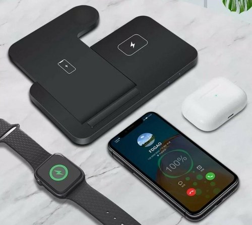This wireless charging set provides you 15W fast charging. Able to charge your phone, apple watch and airpods at once.